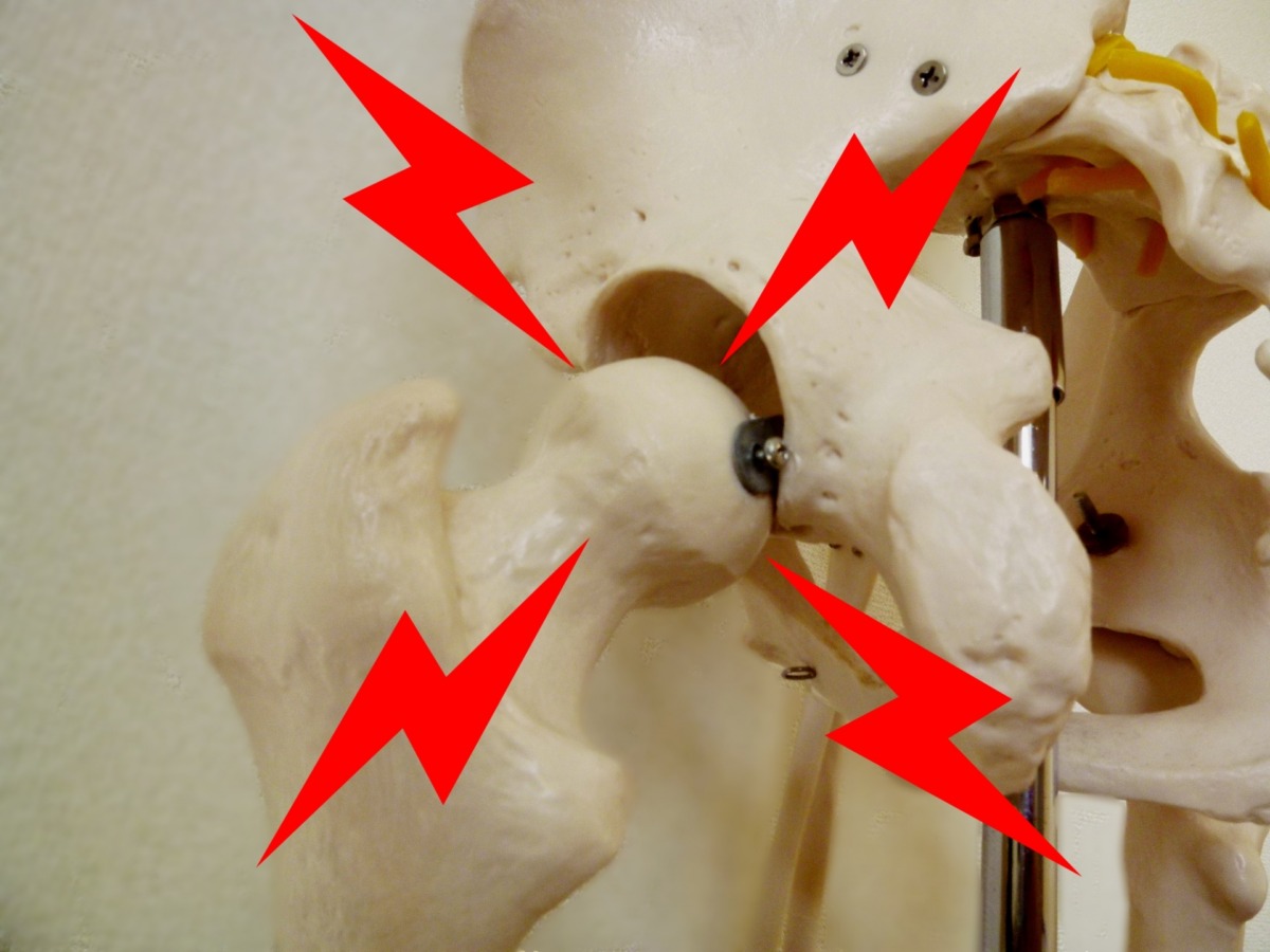 またこの股関節をひねったままだと本来重心を受け止めるところではない場所で歩いているときなどに荷重を受けることになるので、股関節についている腸腰筋や大腿直筋、靭帯にストレスがかかり痛みを発生させやすくなります。