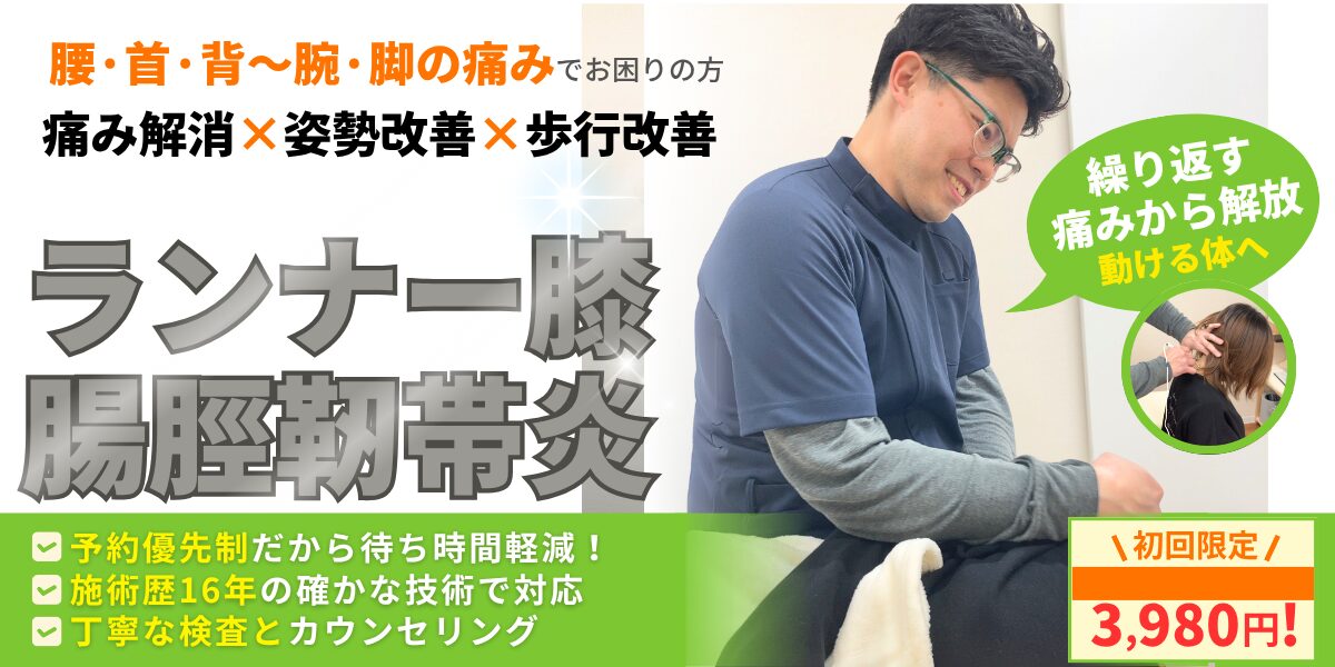 日常生活の中でもこうした要因が重なることで、腸脛靭帯に過度な負担がかかります。
