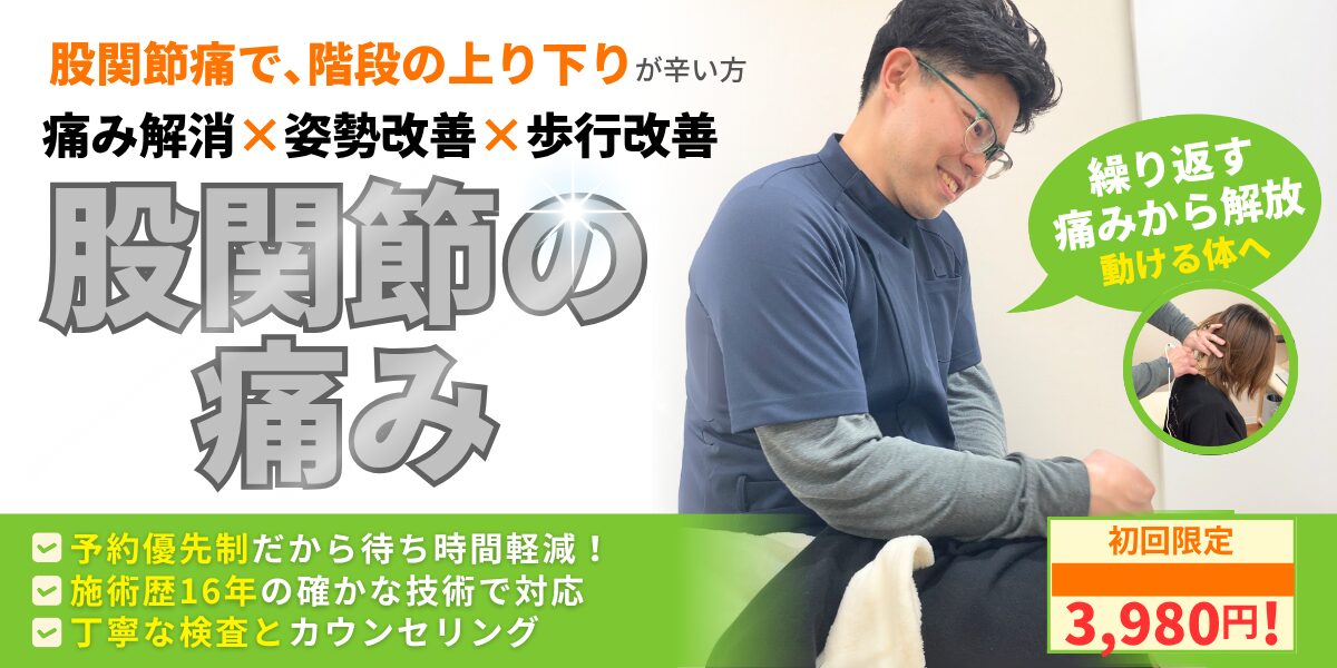 ぜひ、当院で股関節の施術を受け、楽な生活を取り戻して欲しいです。