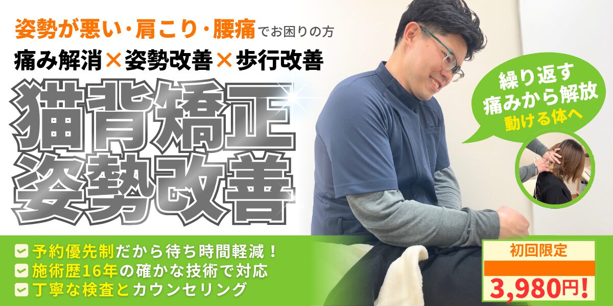 当院では、そんなあなたの悩みに寄り添います。整体院では、全身のバランスを整えることにより、猫背の根本原因を改善に導きます。