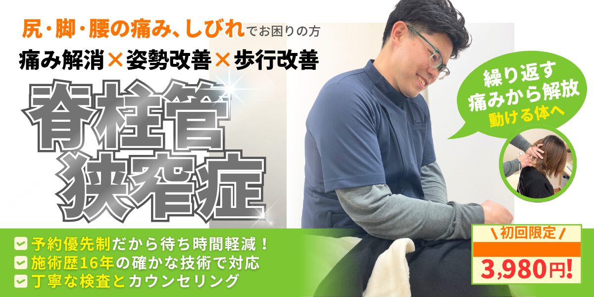 脊柱管狭窄症とは、脊柱管と呼ばれる神経の通り道が狭くなり、圧迫されることでさまざまな症状がでてしまう疾患です。